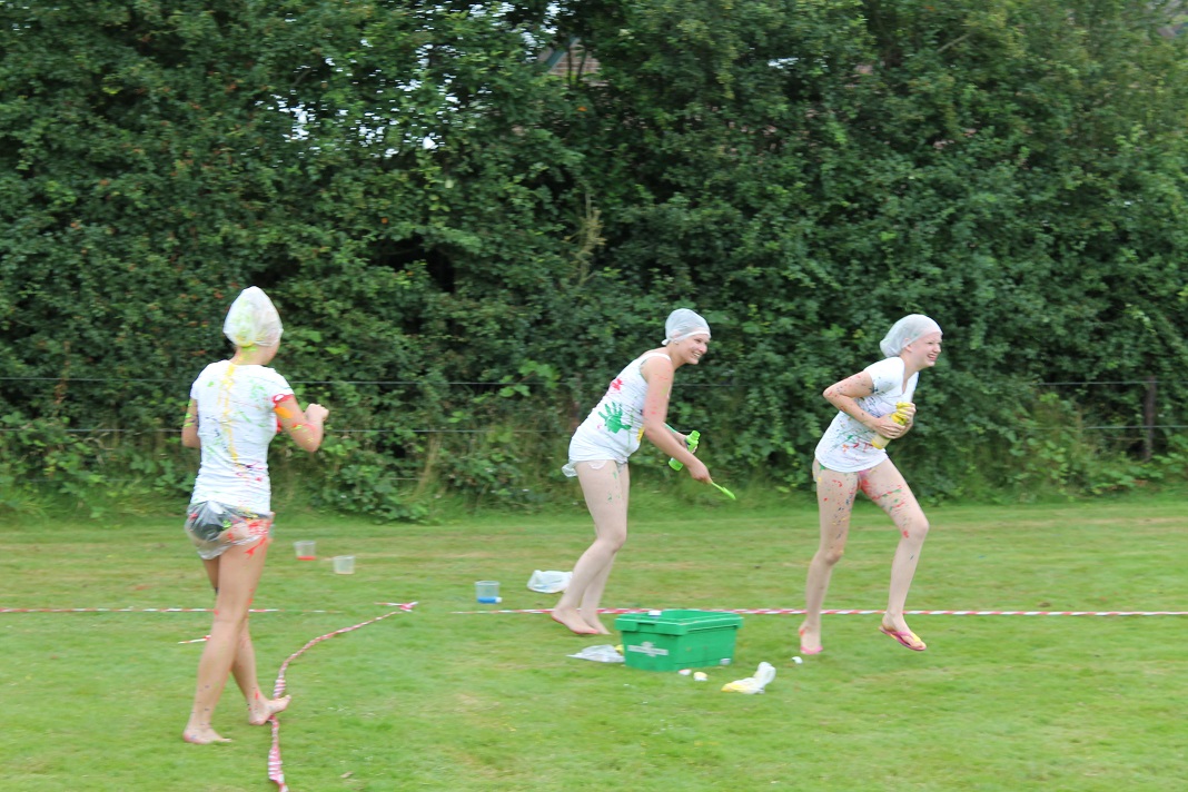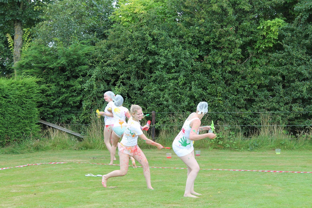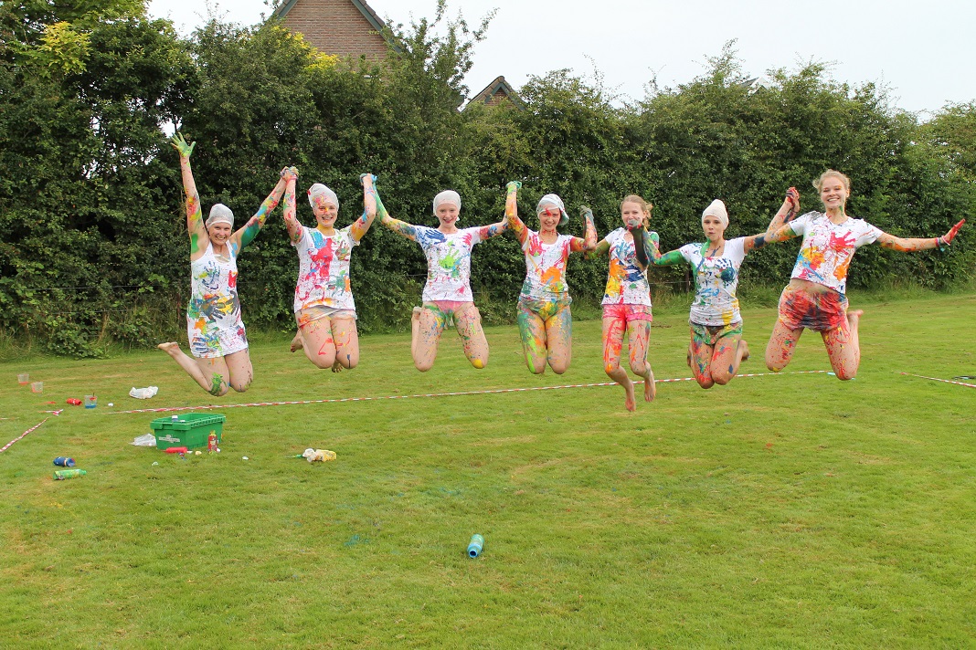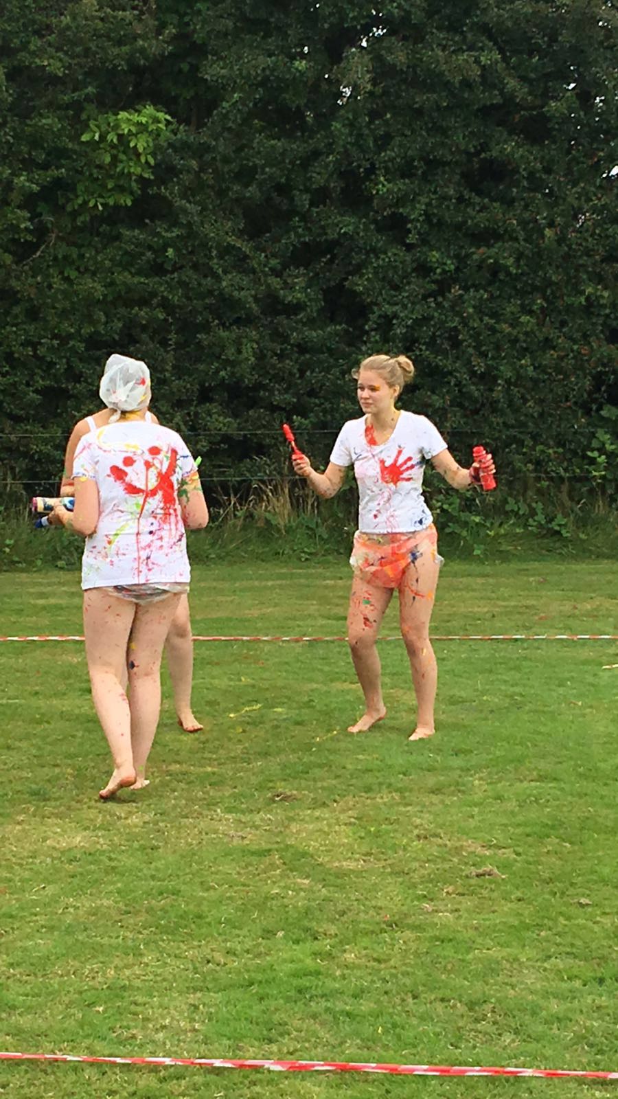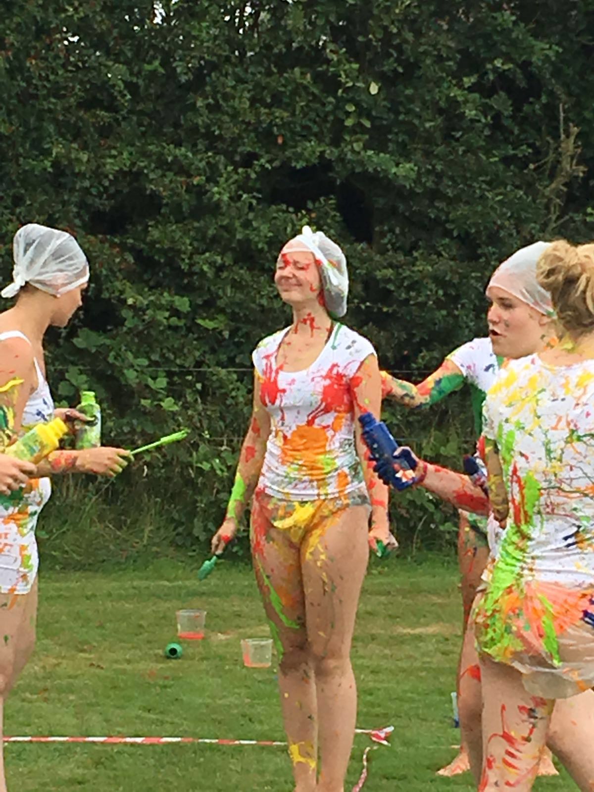 Die großen Jungs waren schon morgens um 6 Uhr unterwegs und sind mit Betreuerin Marion joggen gegangen. Der Rest hat währendessen noch im Bett geschlummert. Nach dem Frühstück wurden Sachen und Spielzeuge gepackt. Bei etwas bewölktem Himmel zogen wir gemeinsam los zum Strand. Die einen buddelten sich ein Wohnzimmer im Sand, die anderen spielten Winkingerschach oder Strandtennis.  Muscheln und Krebse wurde auch gesucht und die ganz "harten" waren sogar im 18 Grad warmen Wasser. Wolle und Axel brachten uns gegen Mittag belegte Brötchen und Getränke. Gegen 15 Uhr wurden die Klamotten dann wieder zusammen gepackt und wir starteten die Rücktour zum Lager. Während die Küche das Essen brutzelte spielten einige Fußball, legten ein paar ruhige Minuten ein usw. Die großen Mädels überkam es und so wurde eine wilde Farbschlacht veranstaltet. Ganz nach dem Motto "T-Shirts bemalen mal anders".