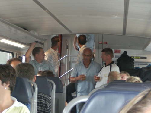 Bereits bei der Zugfahrt von Emmerich nach Koblenz war gute Laune angesagt. Dank der guten Organisation waren ausreichend Getränke vorhanden, die zusammen mit Musik, Verpflegung |