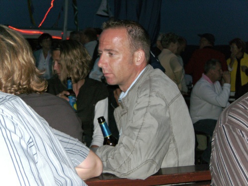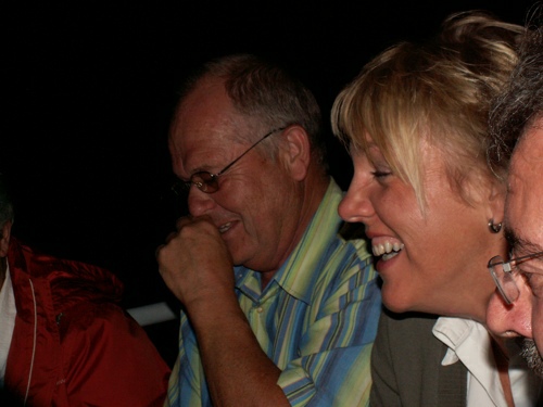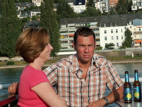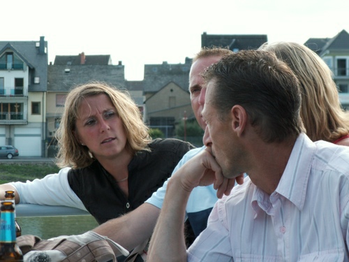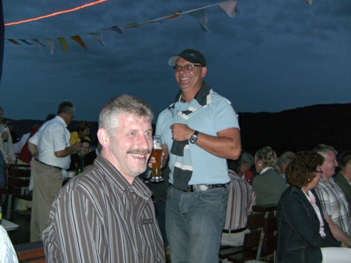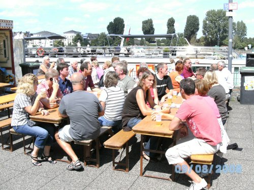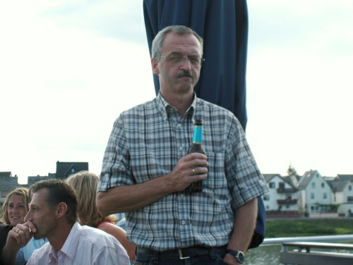kleineren Gruppen in den gemütlichen Cafe's, Eisdielen und Wirtshäusern bevor man sich dann abends am Anlegeplatz zur Schifffahrt traf. Um 17.00 Uhr ging die Fahrt bei strahlendem Sonnenschein mit dem Schiff Richtung Boppard los. Dort trafen wir auf weitere 75 bis 80 Schiffe und gemeinsam fuhr man dann in Europas größtem Schiffskorso von Boppard aus in 1,5 Stunden die 18 km |
