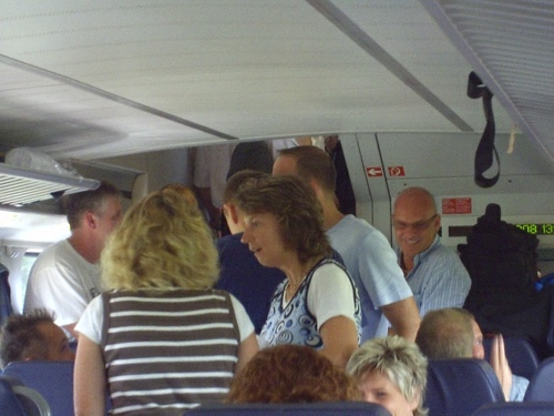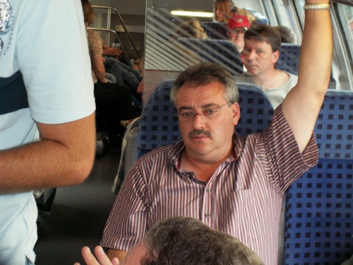 und guter Laune, den Regionalzug schnell in einen Partyzug verwandelten. |