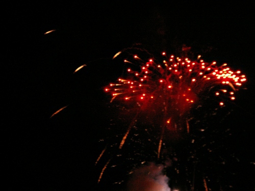 Abschlussfeuerwerk von der Festung Ehrenbreitstein aus. Um Mitternacht verließen wir das Schiff und verbrachten den Rest des Abends am Ufer von Rhein und Mosel. |