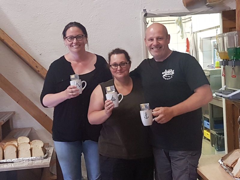 Danke aber auch an Wolle, Meike und Melanie, die bei jeder Wetterlage (auch bei gefühlten 60 Grad in der Küche) die besten Menüs gezaubert und uns mindestens eine Kleidergröße mehr verschafft haben.