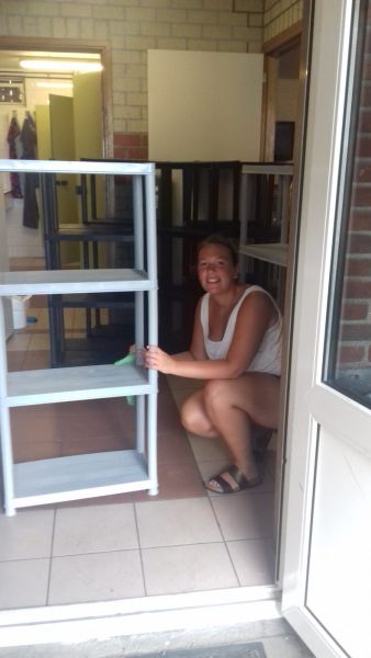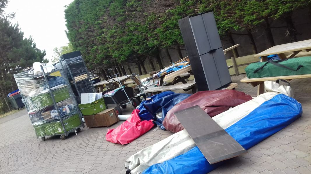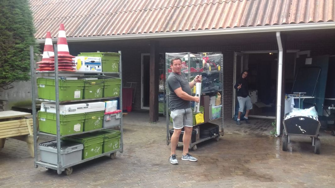 Morgen wird der LKW beladen und deswegen muss alles wieder ordentlich verpackt und auf die Rollwagen verteilt werden. Somit teilte sich das Lager heute.