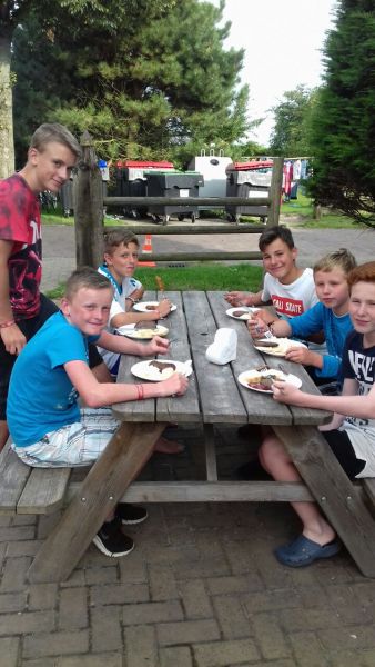Um 15 Uhr gab es Mittagessen. Fritten mit Fleischrolle, Fleischkrokette, Kaassoufflé oder Kipkorn aus der hauseigenen Fritteuse!