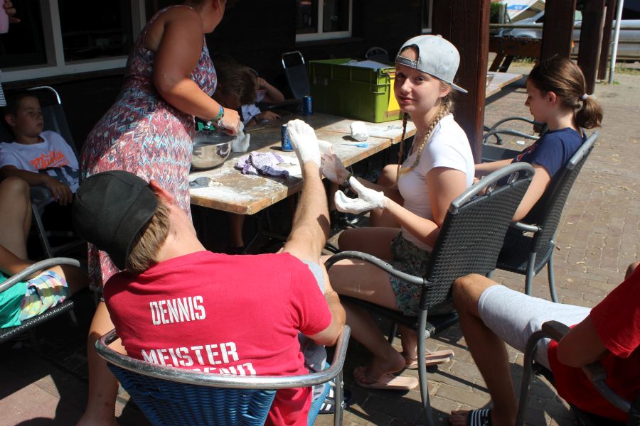 Danach konnten wir zur Snackbar, Fußball spielen, chillen oder mit Yasmin und Annalena Gipsabdrücke machen.