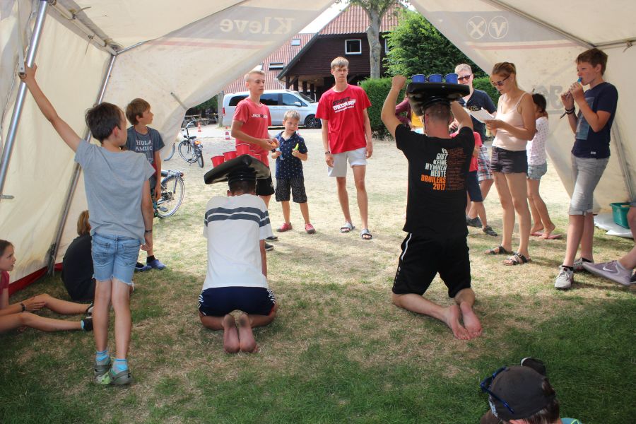 Um 15 Uhr ging es weiter im Programm. Anja und Jacky haben sich einiges einfallen lassen und mit uns das Spiel "Schlag den Betreuer" gespielt. Da war das ein oder andere witzige Spiel dabei, nur leider haben die Betreuer mehr Spiele gewonnen als die Kinder. (Vielleicht sollten wir den Betreuern mal erklären, dass Kinder gerne gewinnen wollen, auch wenn man das Spiel besser kann ;-))
