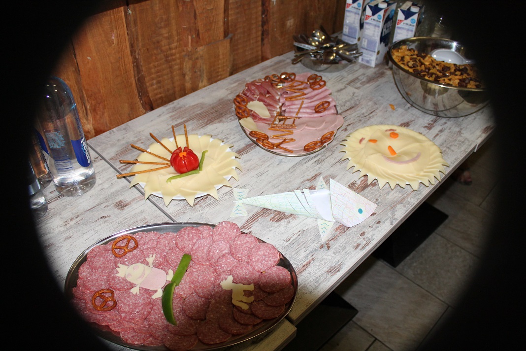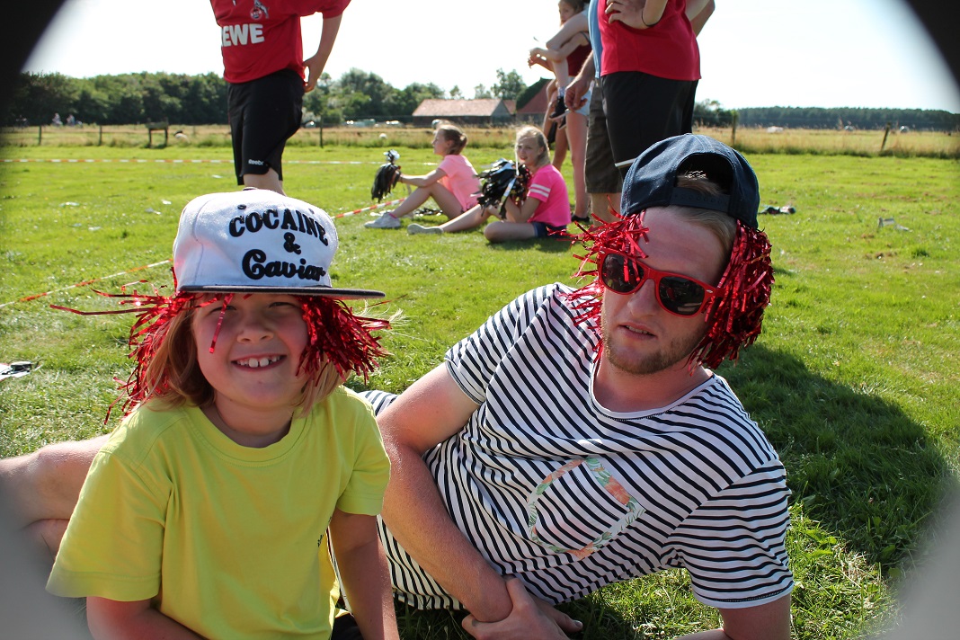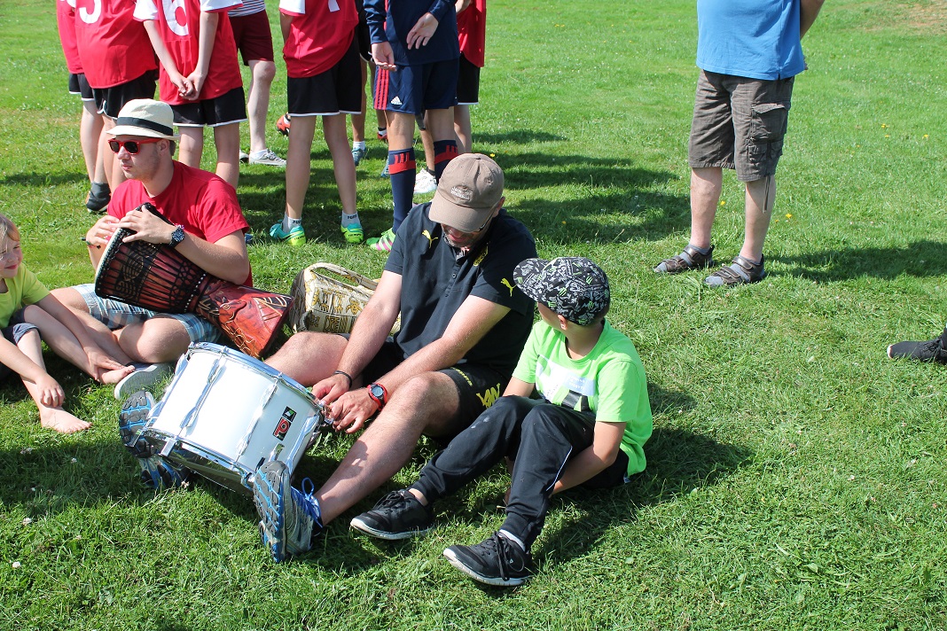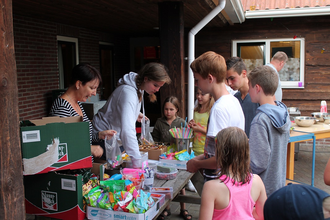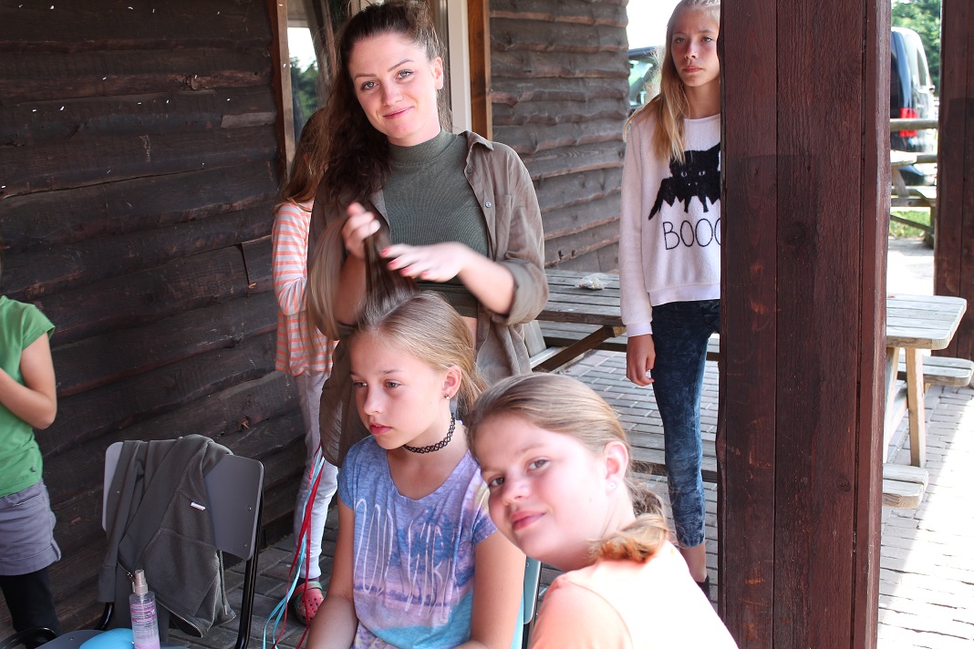 Wie im Bericht heute morgen zu lesen, war der Vormittag schön sonnig. So haben wir in der Sonne Freundschaftsarmbänder gebastelt, von Marion die Haare flechten lassen oder die Jungs haben sich zur Typveränderung motivieren lassen. Kicker- und Tischtennisturniere fanden auch statt.