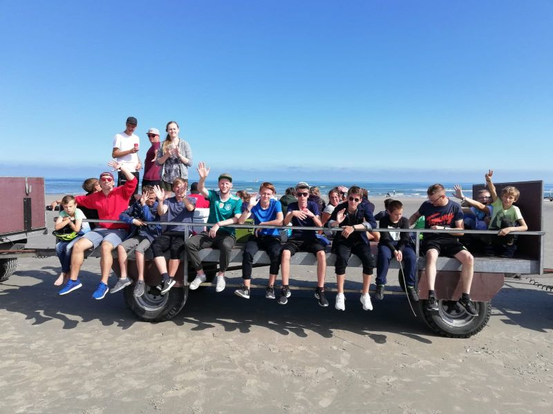 Morgens 8 Uhr auf Ameland und die Sonne strahlt nur für uns und vorallem für unser Geburtstagskind Marie. Wie immer gab es dann um 8:30 Uhr Frühstück. Bei bestem Wetter durften wir uns anschließend auf dem Weg zum Strand machen, denn dort wartete schon der Strandjutter auf uns. Einmal bis zum Oerd und zurück. Die Fahrt am Strand ist wirklich zur Tradition geworden und immer wieder ein tolles Erlebnis für alle!