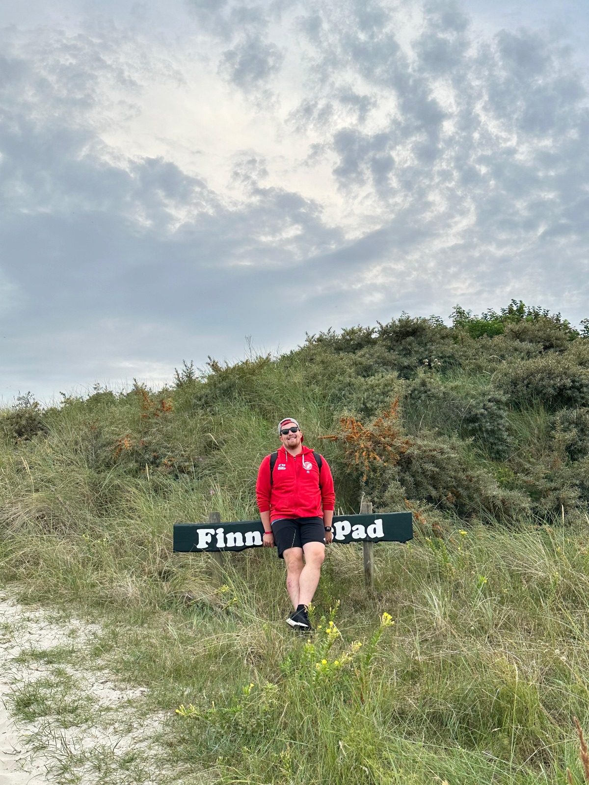 Nach der Mittagspause sammelten wir uns vor dem Lager, denn wir fuhren mit den Rädern nach Nes zum Strand. Von da aus starteten wir unseren Spaziergang, mit einer HotDog Pause in Ballum, zum Leuchtturm.