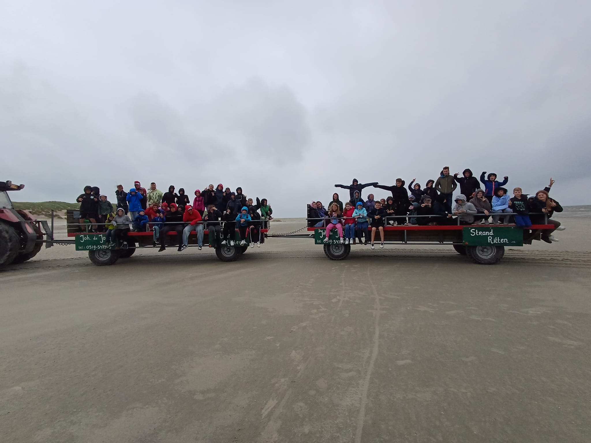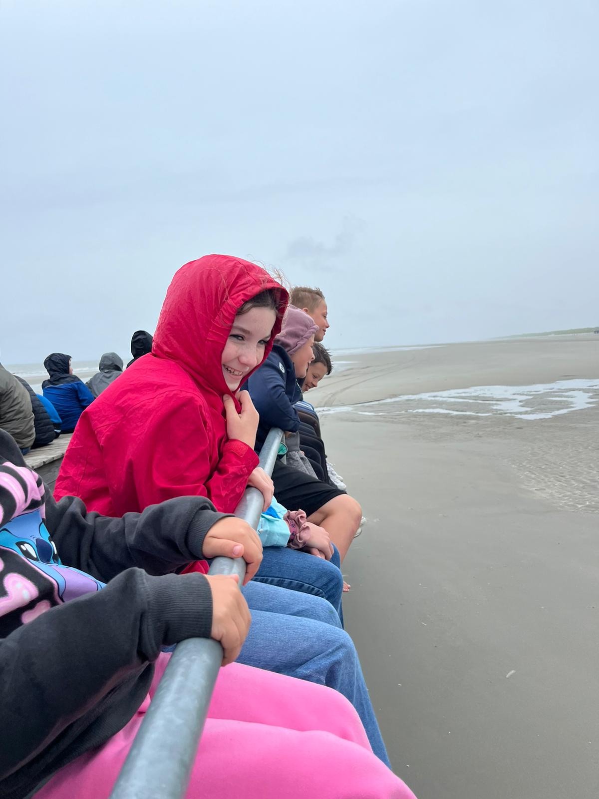 Unser Abendprogramm wurde leider nass, sandig und windig. Mit dem Trecker fuhren wir dieses Jahr eine andere Route als sonst, nämlich von Buren Strand bis nach Hollum, wo wir den Leuchtturm sehen konnten. Auch wenn es wetterbedingt eher ungemütlich war, haben wir das Beste draus gemacht und hatten trotzdem unseren Spaß.