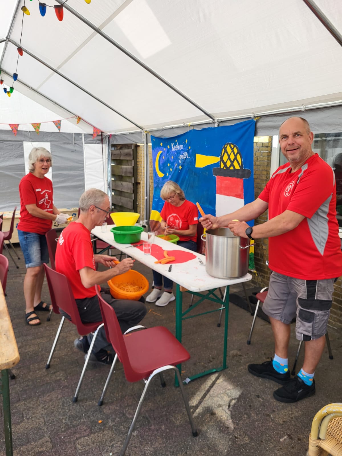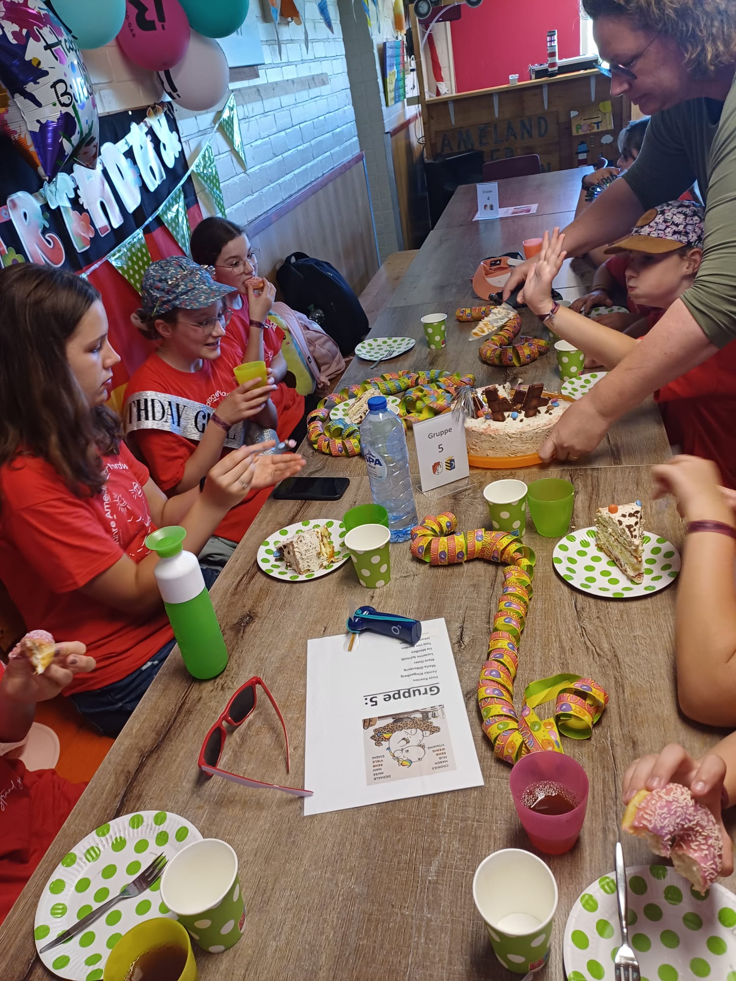 In der Zwischenzeit ist im Lager noch viel passiert. Die letzten Dinge wurden aufgebaut und eingeräumt. Unser Abendessen wurde vorbereitet und der Tisch für unser Geburtstagskind Femke wurde gedeckt.