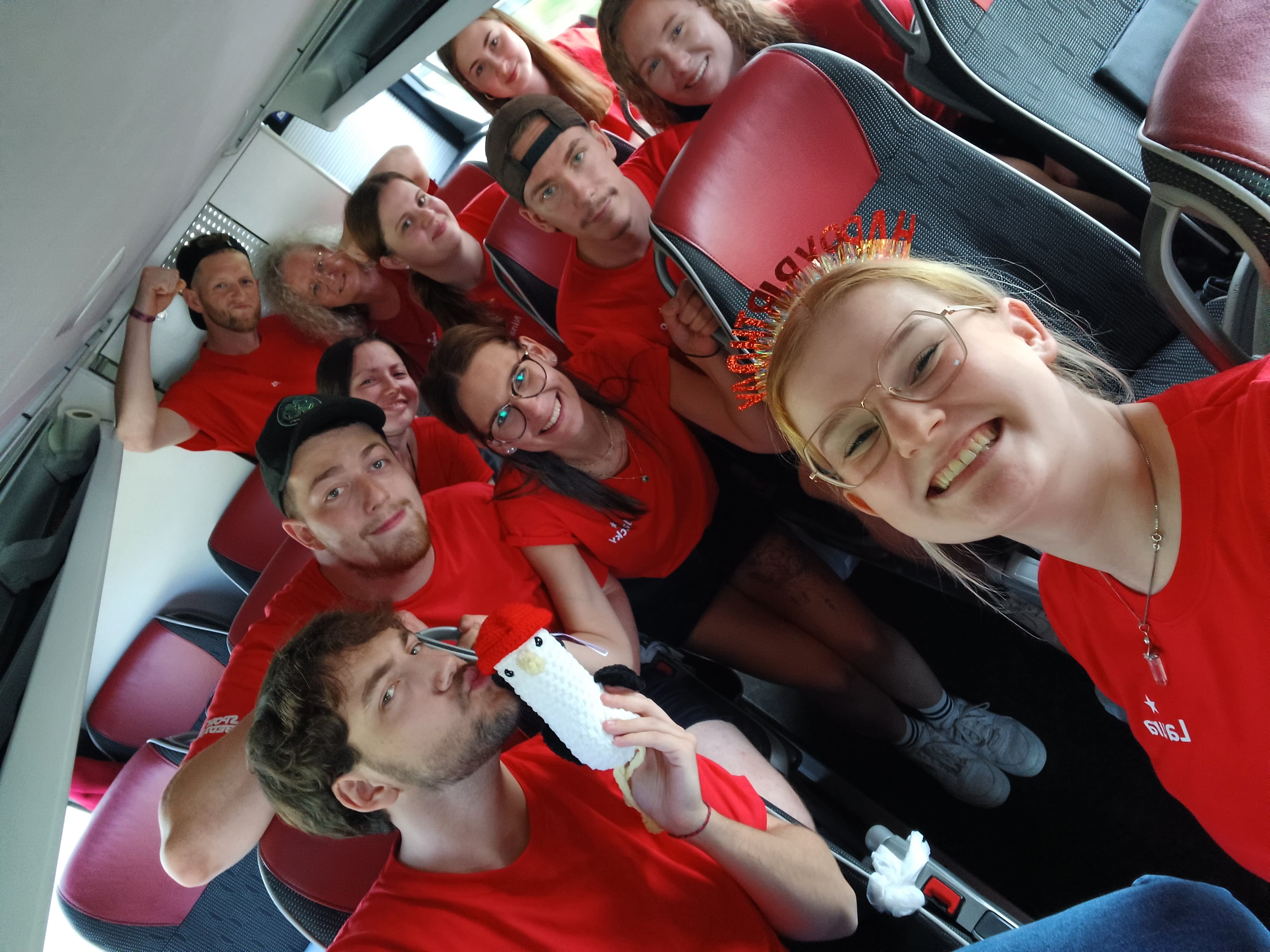 Mit ein paar Minuten Verspätung traf der Bus endlich ein. Durch den Reisesegen von Christel konnten wir dann entspannt in den Bus steigen und spätestens ab diesem Moment sind eh alle Sorgen vergessen.
