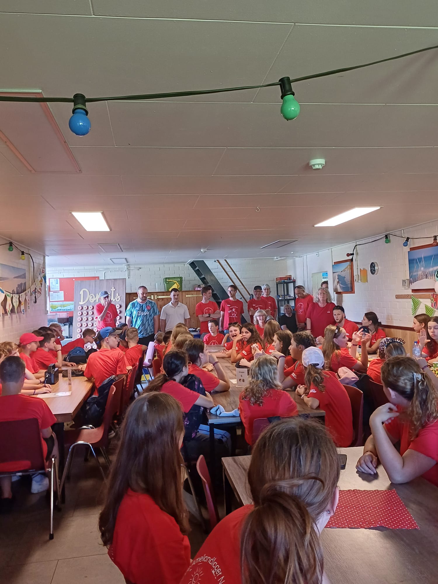 Nachdem Anja die Gruppeneinteilung genannt und die dazugehörigen Betreuer vorgestellt hat gingen Denno und Finn mit unseren neuen Lagerarmbändern rum.