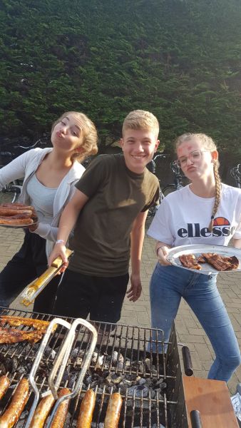 Gegen Abend begannen wir mit dem Grillen. Dabei bekamen wir neuen Besuch. Eine ehemalige Betreuerin Marion und der Pastor Priesen kamen heute im Lager an. Wir sagen HERZLICH WILLKOMMEN!