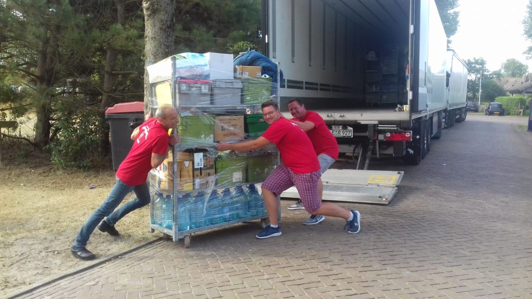 Morgen wird der LKW beladen und deswegen muss alles wieder ordentlich verpackt und auf die Rollwagen verteilt werden. Somit teilte sich das Lager heute.