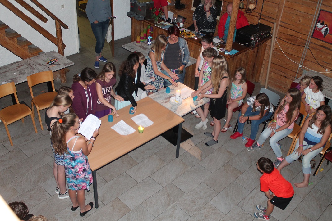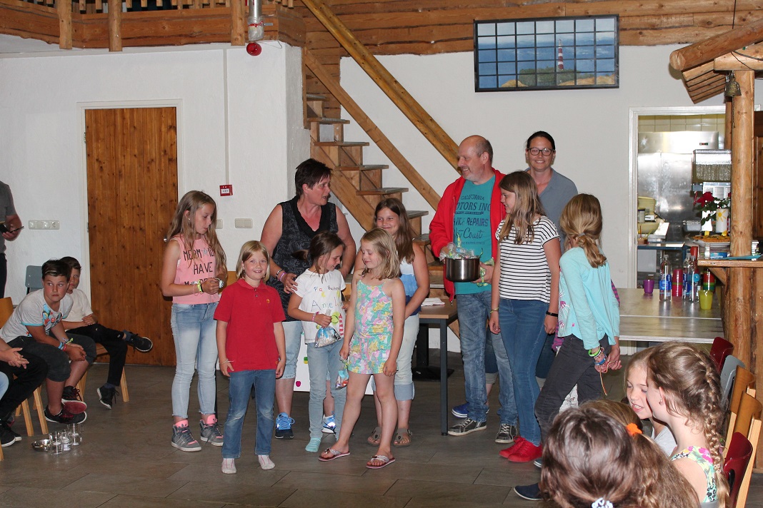 Wir möchten auch noch erwähnen, dass unsere kleinsten Mädels den "Küchenaward" gewonnen haben. Die Gruppen haben abwechselnd in der Küche beim aufdecken und spülen geholfen. Der ein oder andere hatte dann schonmal keine Lust, doch die kleinsten haben ohne Murren und Knurren mitgeholfen. Dafür hatte die Küche am Bunten Abend ein kleines Geschenk vorbereitet.