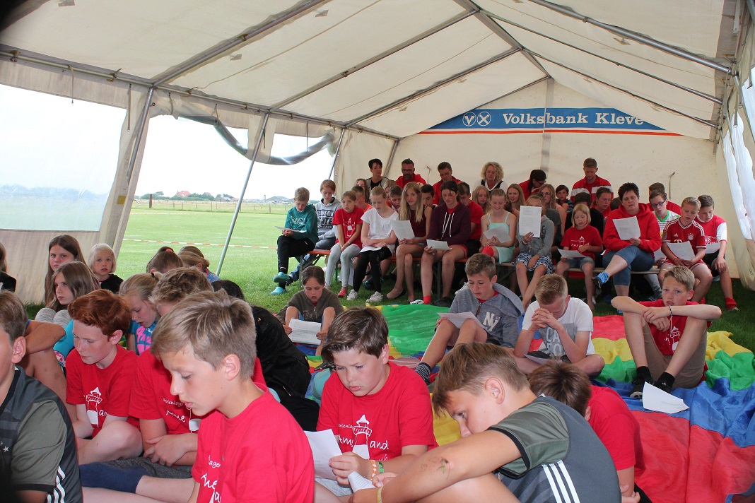 Um 15 Uhr waren die Rückspiele gegen Nütterden angesetzt. Beide Mannschaften konnten die Gegner besiegen. Die "kleinen" gewannen 5:2 und die großen Jungs konnten die Gegner mit einem Endstand von 4:2 nach Hause schicken. Vorher überreichte aber unser "Bachelor" Lukas, Fiona aus dem Ferienlager Nütterden eine Rose. Die 2 lernten sich beim Hinspiel kennen. Mal gut, dass die Liebe im Kreis Kleve bleibt.