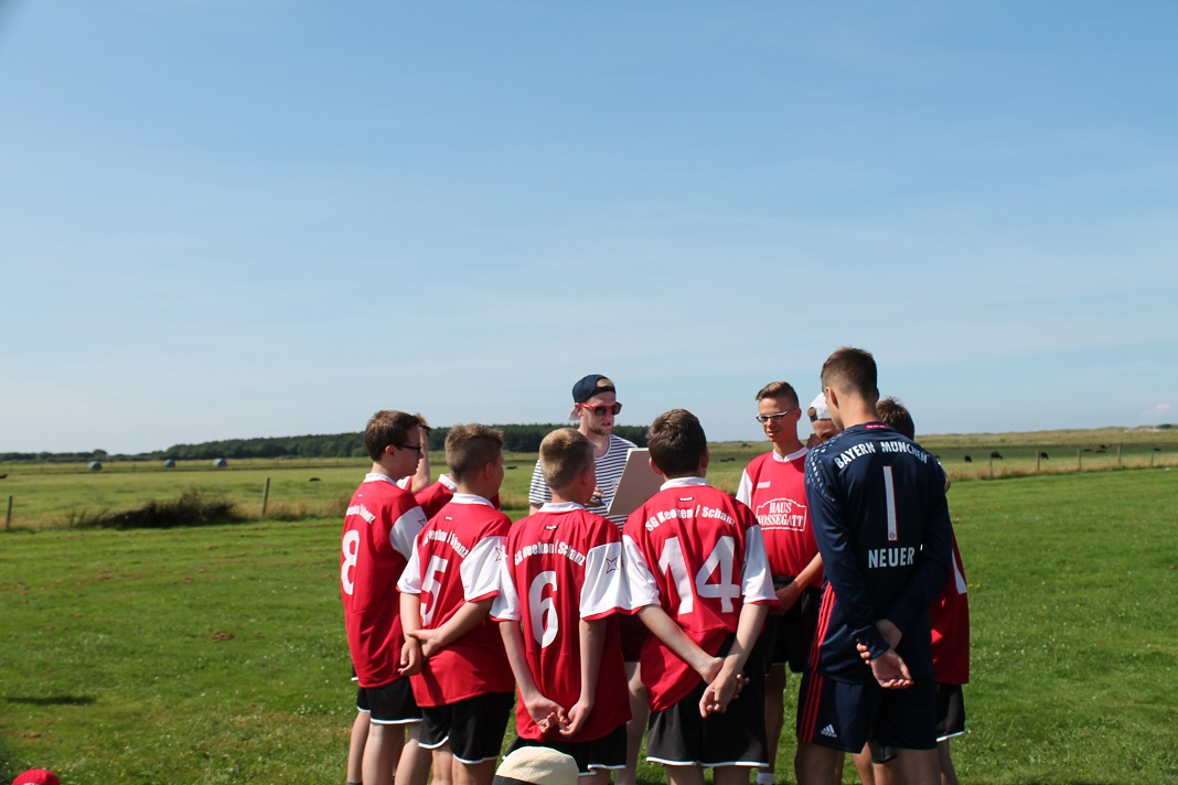 Wie im Bericht heute morgen zu lesen, war der Vormittag schön sonnig. So haben wir in der Sonne Freundschaftsarmbänder gebastelt, von Marion die Haare flechten lassen oder die Jungs haben sich zur Typveränderung motivieren lassen. Kicker- und Tischtennisturniere fanden auch statt.