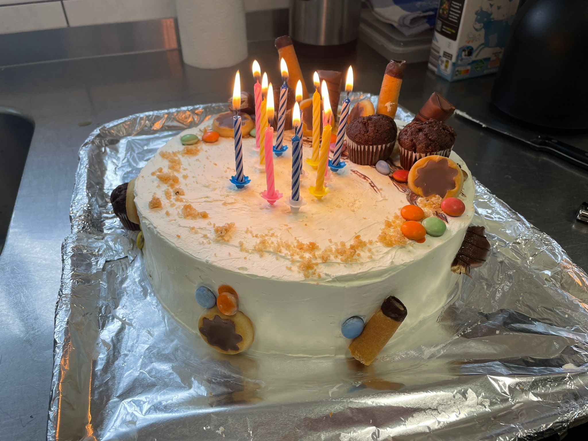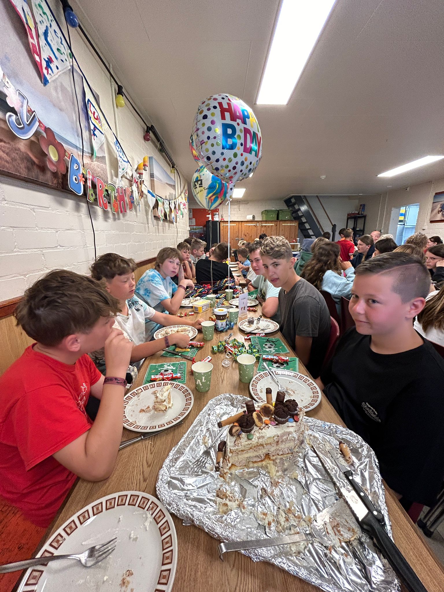 denn unser Linus hat Geburtstag. Bereits zum Frühstück wurde der Tisch dekoriert und eine wunderschöne Torte, gezaubert von Maret, überreicht. Natürlich gab es auch Geschenke für unser Geburtstagskind und ein Ständchen wurde vom ganzen Lager gesungen. Schöner kann ein Geburtstag wohl nicht sein.