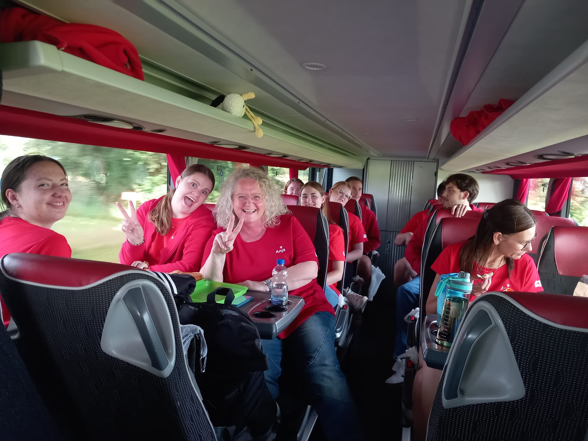 Mit ein paar Minuten Verspätung traf der Bus endlich ein. Durch den Reisesegen von Christel konnten wir dann entspannt in den Bus steigen und spätestens ab diesem Moment sind eh alle Sorgen vergessen.